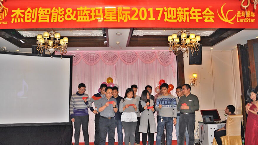 九游ninegame智能董事长孙超先生、各界嘉宾、九游ninegame智能董事兼蓝玛星际总经理朱勇杰先生及蓝玛星际全体员工、九游ninegame智能北京分公司员工一众人等出席了本次年会。大家亲切交流,热情互动,一起回顾2016,展望2017,表彰先进、喜中大奖、欣赏歌舞、品味美食、分享喜悦,共同参与了一场喜庆、圆满的年度欢乐盛宴。